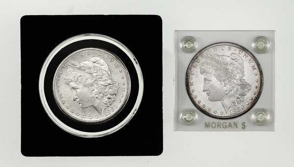 Group of (2) $1 Morgan Silver Dollars, 1880-1881, includes 1880 and 1881-S, Almost Uncirculated or better. (Image) (Image2)