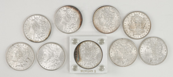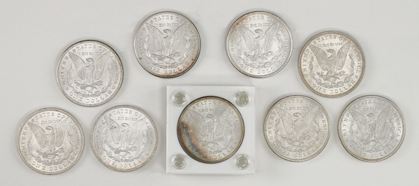 Group of (9) $1 Morgan Silver Dollars, 1880-1897, includes 1880, 1881, 1884, 1885, 1887, 1888, 1890. 1896, and 1897, Choice