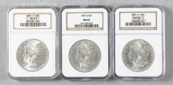 Group of (3) 1881-S $1 Morgan Dollars NGC MS65 Shipping charges apply - weight 1 lbs. (Image) (Image2)