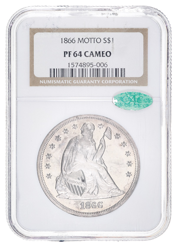 1866 $1 Seated Liberty Dollar With Motto NGC PF64 Cameo CAC (Image) (Image2)