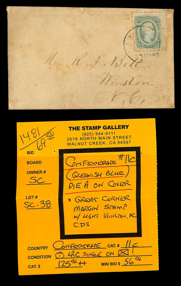 StampAuctionNetwork® is a registered trademark of Droege Computing Services, Inc | StampAuctionCentral and StampAuctionNetwork® are Copyright © 1994-2026 Droege Computing Services, Inc. All Rights Reserved. | Mailing Address: 20 West Colony Place, Suite 120, Durham NC 27705 | If you want to talk to me about anything other than selling your stamps, call 919-403-9459 and ask for Tom Droege, or email support@stampauctionnetwork.com We can help you evaluate or sell your collection so... Click here for help selling your Collection. Once you follow the instructions we can talk. But first we have a process. Sign up for a paid or free membership | Lost your Links? Return to StampAuctionNetwork® | Instructional Videos - Master StampAuctionNetwork® | Sign up for our Newsletter | Terms and Conditions.