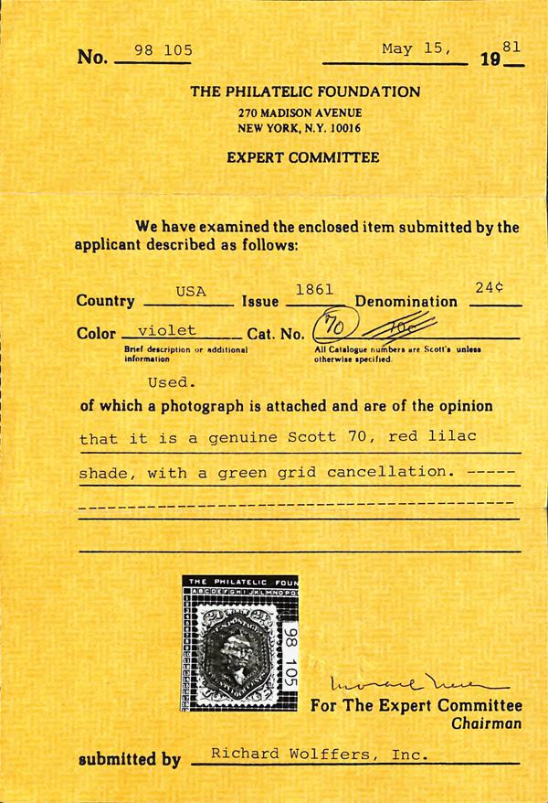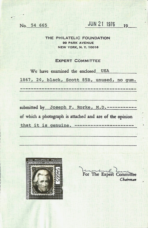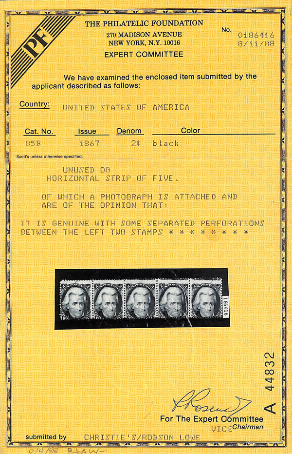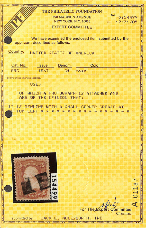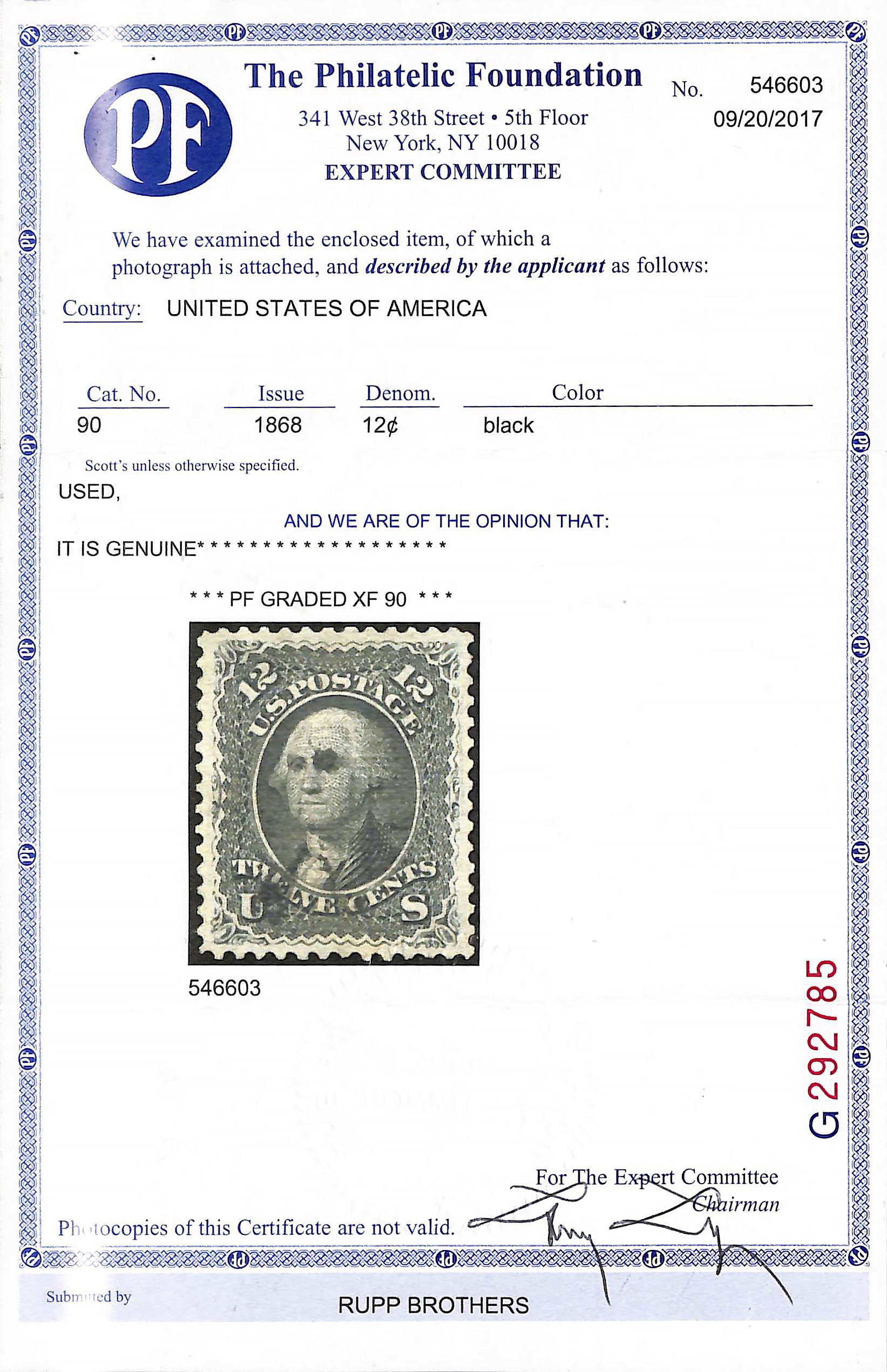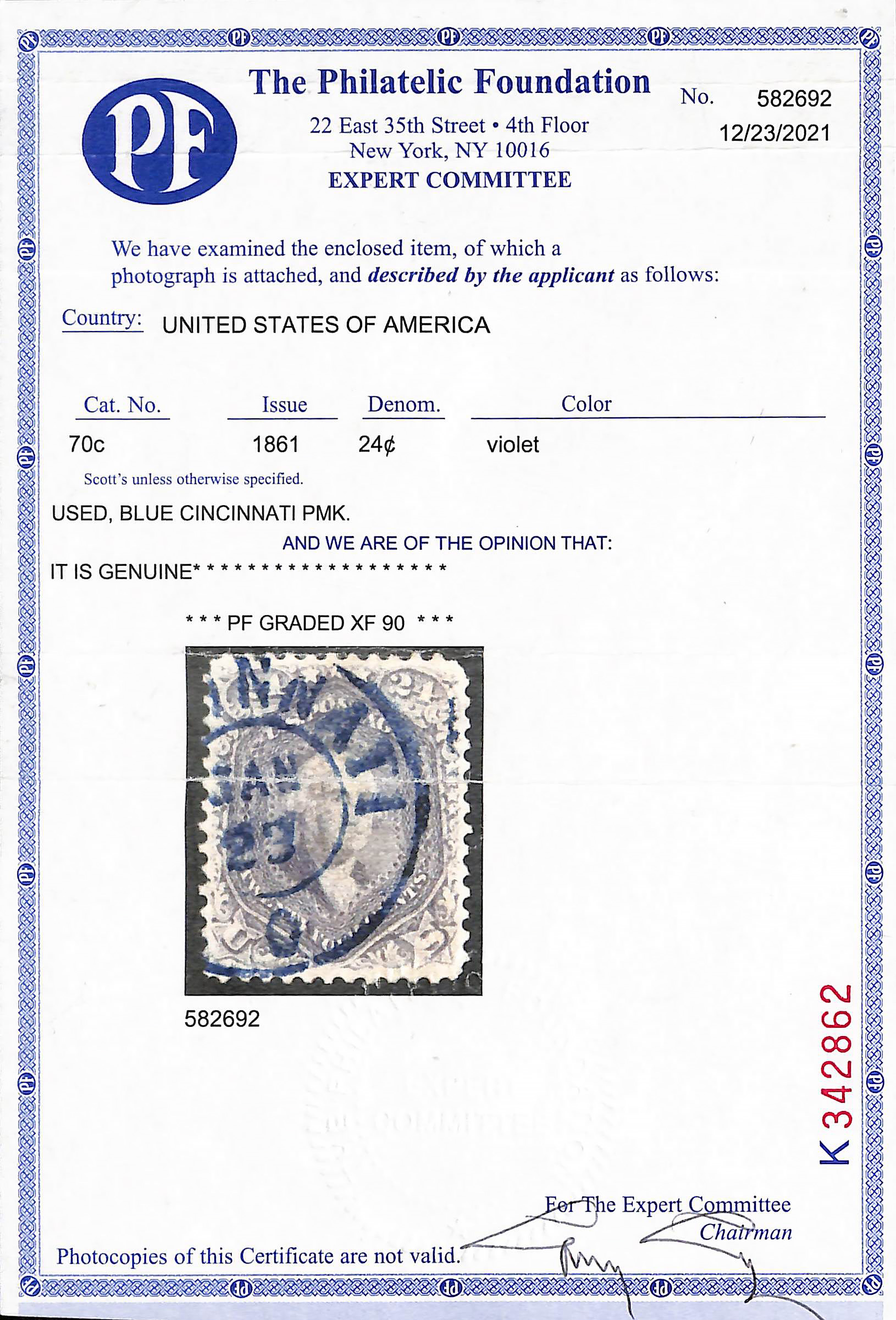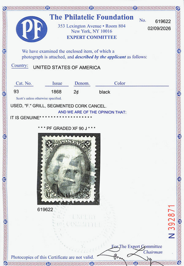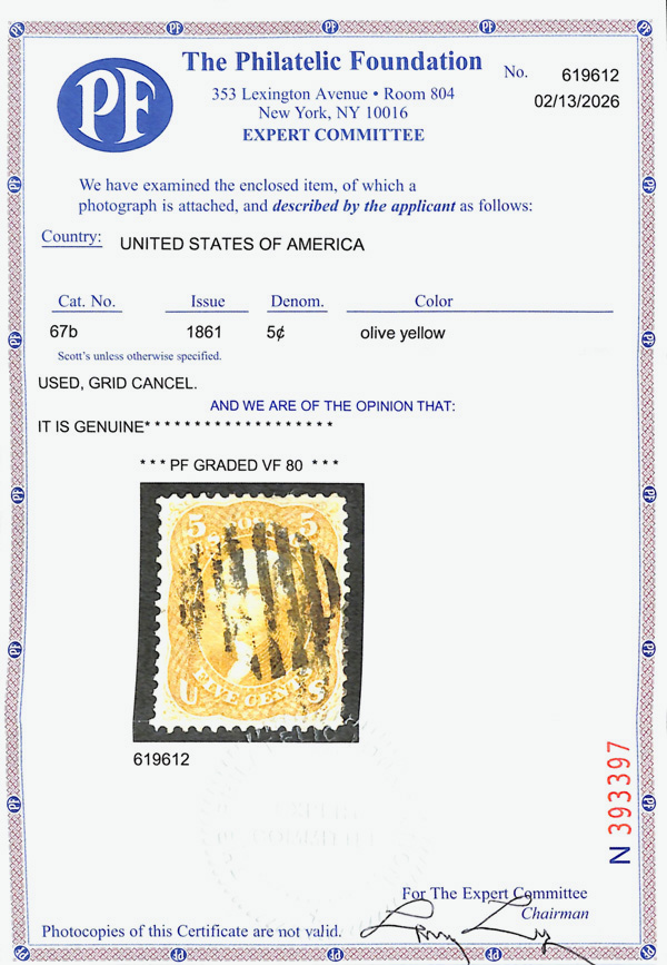 ex Dr. Rorke, Golin, Wingate, Przybyl, with 1976, 1994 and 2021 P.F. certificates, the last graded XF 90. SMQ XF 90; $9,000. Scott $8,000. (Image) (Image2)