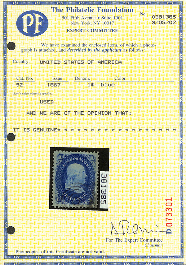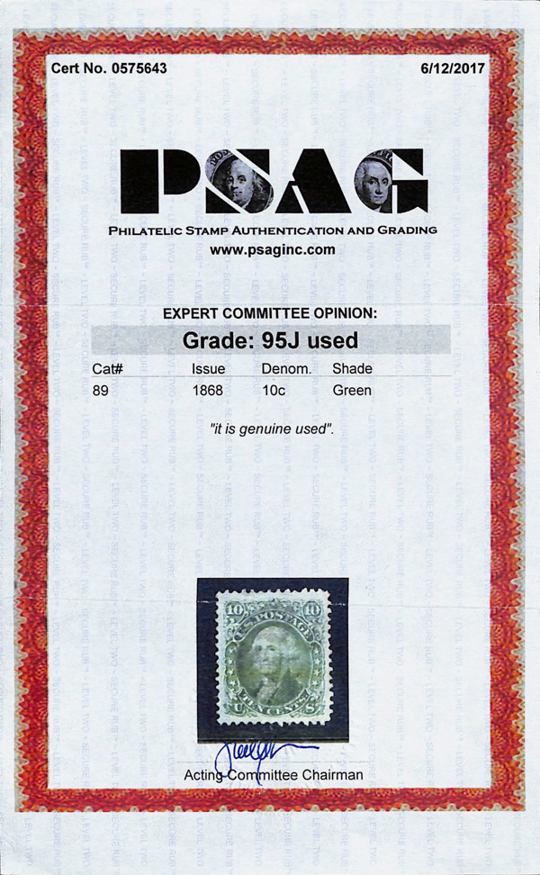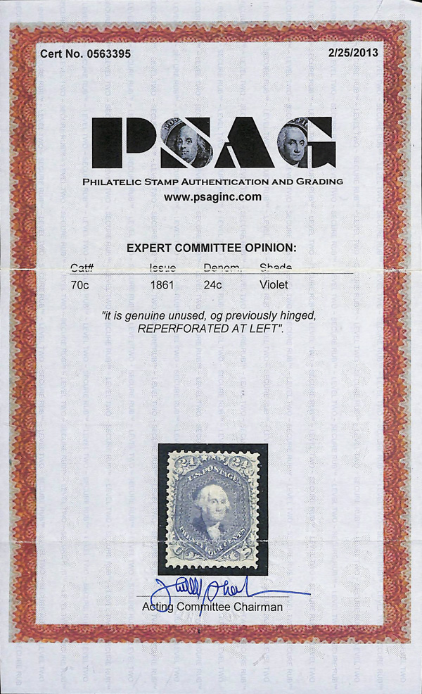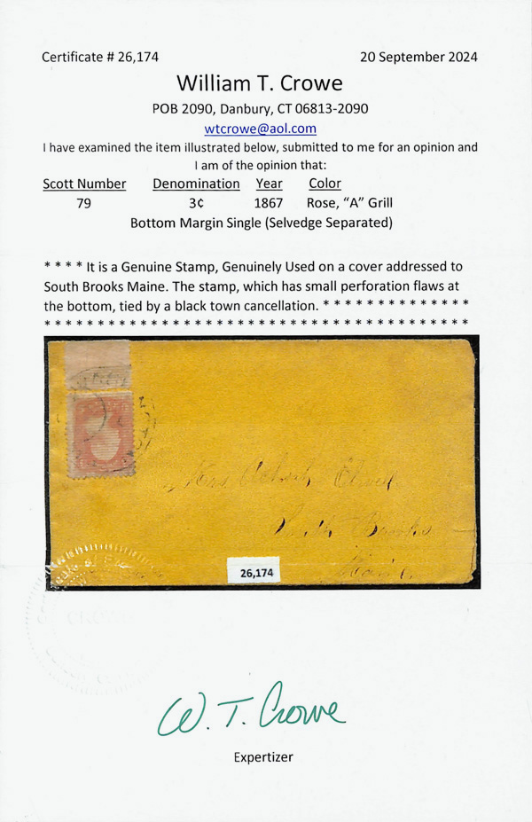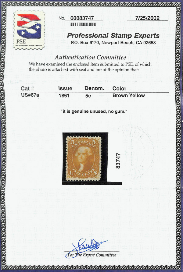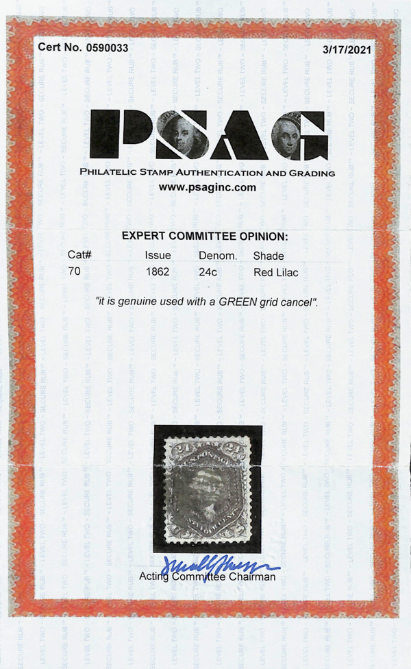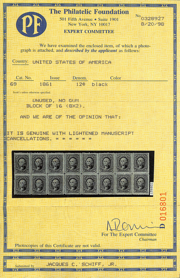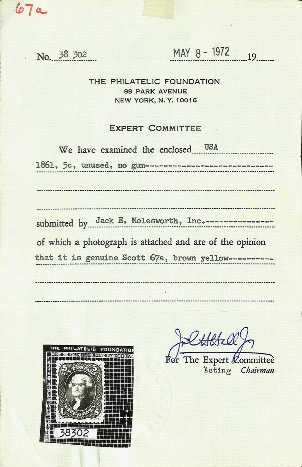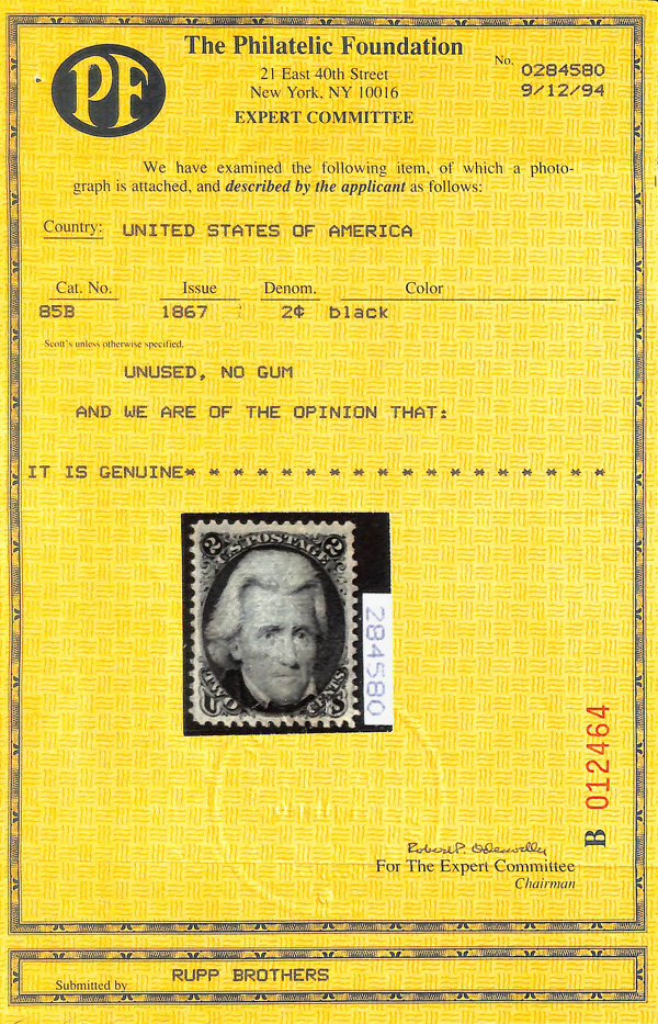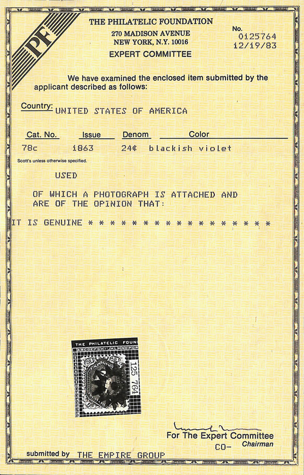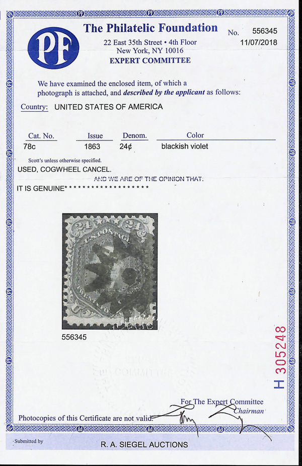 ex Dr. Rorke, Golin, Wingate, Przybyl, with 1976, 1994 and 2021 P.F. certificates, the last graded XF 90. SMQ XF 90; $9,000. Scott $8,000. (Image) (Image2)