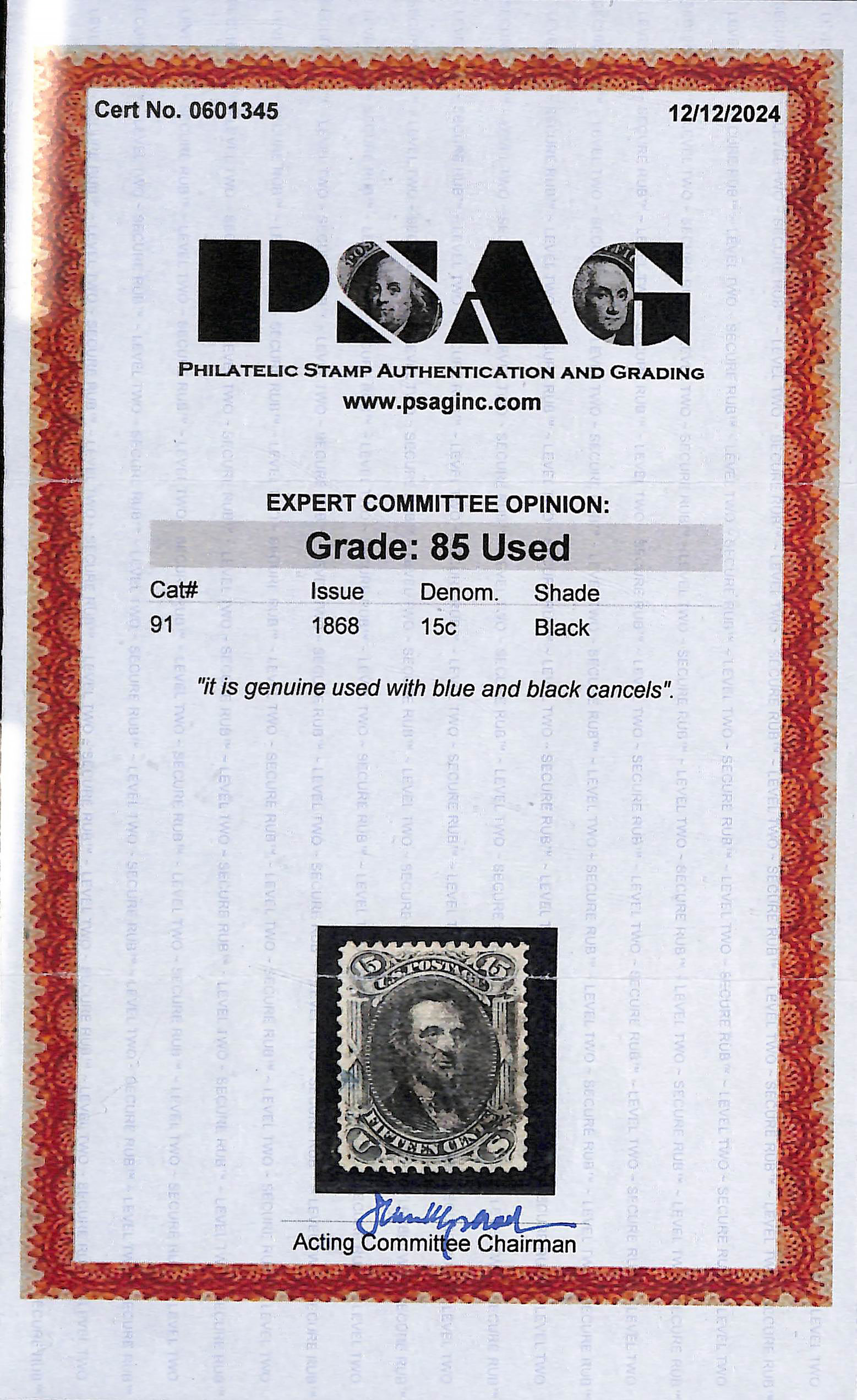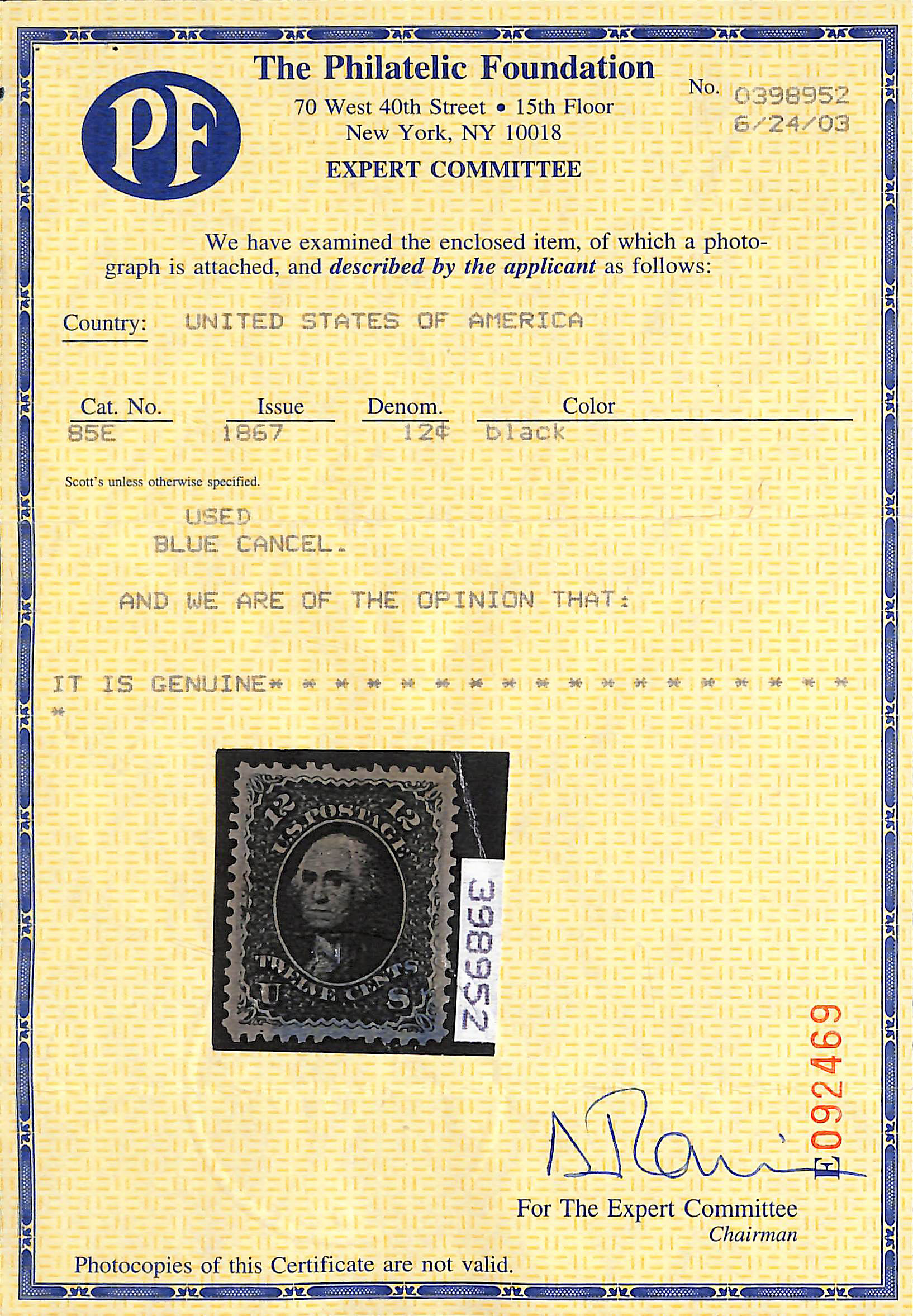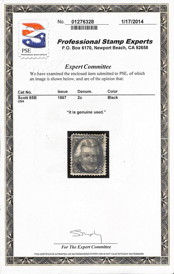 1867, 2¢ black, Z. grill (Scott 85B), unused without gum, Post Office fresh with rich color and sharp detail,