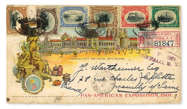 1901, Pan-Americans complete, First Day Cover to Germany (Scott 294-299), set of 6, tied by 3 strikes of Washington D.C.
