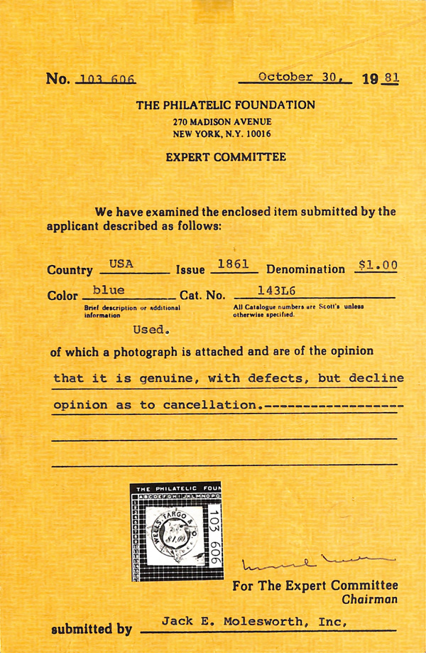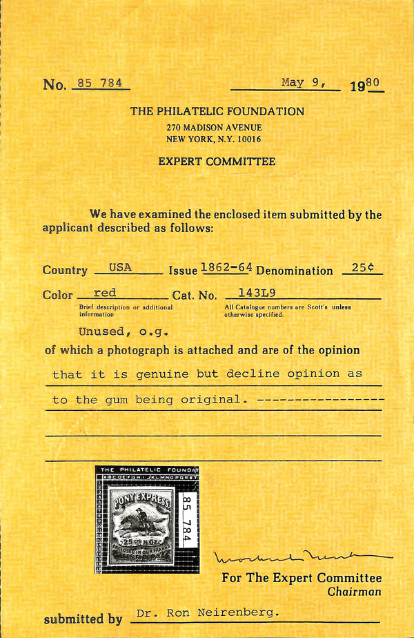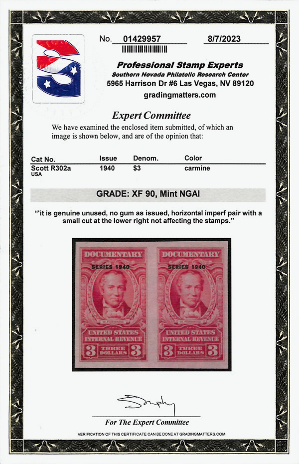 gum or four margins. Scott $1,630 as o.g. (Image) (Image2)