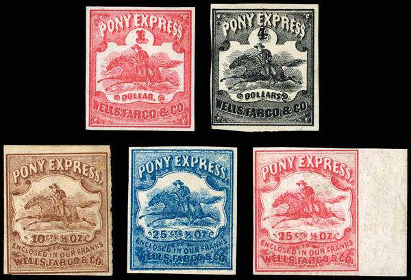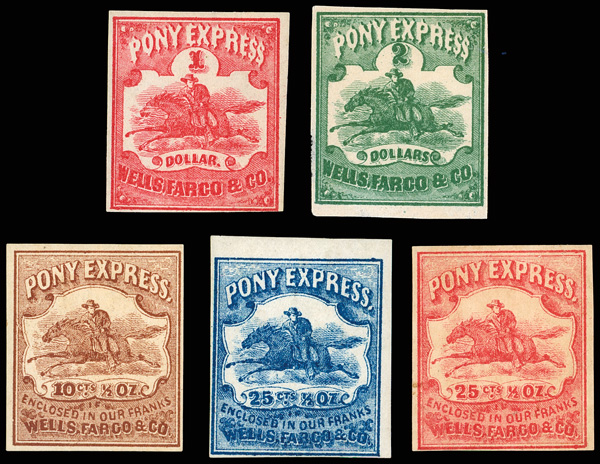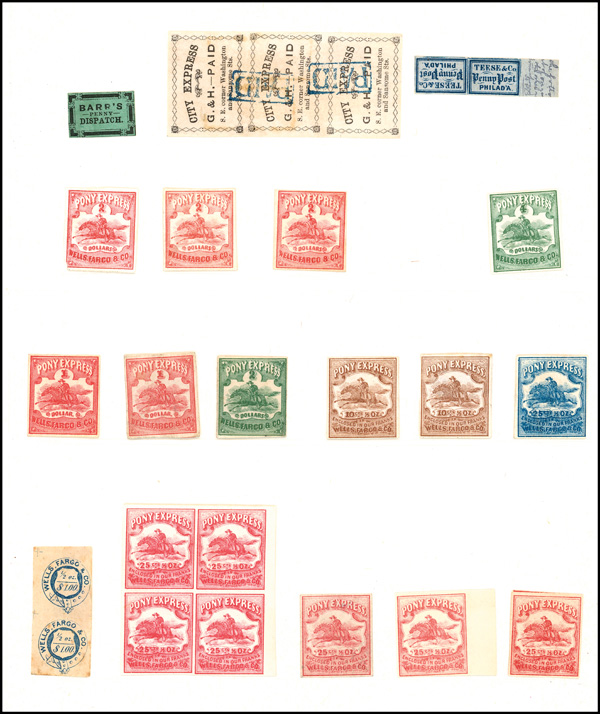 o.g., 143L4 no gum, 143L7 part o.g., 143L8 o.g., 143L9 brownish o.g., rich colors on bright white papers, Fine to Very Fine, see the others online, the popular Horse & Rider stamps of Wells, Fargo & Co. are scarce and the vast majority do not have