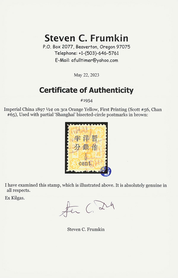 Get Market Data for [China (Empire) 62-63] Visual Pricing Guide Sample Census