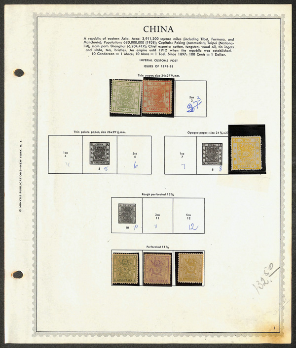 Tibet included; outstanding singles, sets and more throughout, featuring innumerable highlights such as China Large and Small Dragons with varieties, Dowagers both basic and surcharged, Red Revenues, CIP and ICP Coiling Dragons including dollar