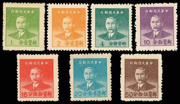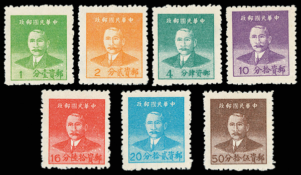 4183 ng image1949, Silver Yuan, Dr. Sun Yat-sen, 1¢-500¢ complete (Chan S22-S30. Scott 973-981), lovely set, Post Office fresh with crisp detail on like-new paper, without gum as issued, Very Fine. Scott $1,042 (HK$ 8,020). (Image1) (Image2) (Image3) (Image4) (All Images)