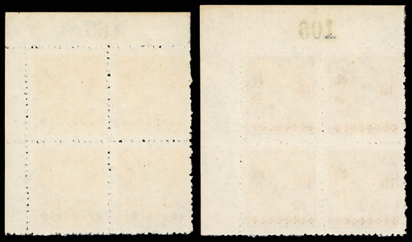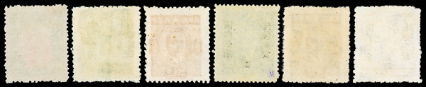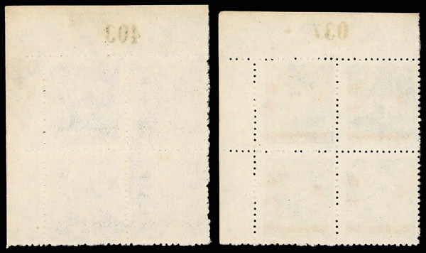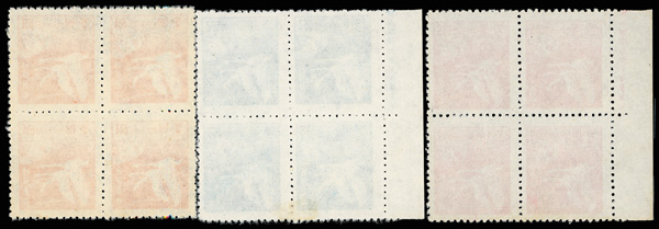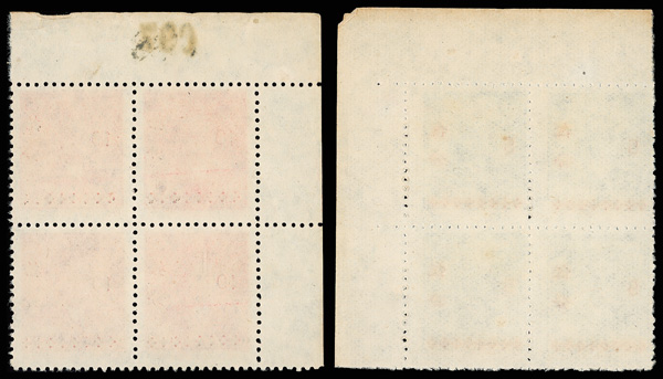 4187 ngbl image1949, Silver Yuan, Kwangtung surcharges on Dr. Sun Yat-sen complete (Chan S95-S100. Scott 991-996), right margin imprint blocks of four except one of the 2½¢ values, all with fresh colors, without gum as issued, Very Fine. Scott $570 as singles (HK$ 4,380). (Image1) (Image2) (Image3) (Image4) (Image5) (Image6) (Image7) (Image8) (All Images)