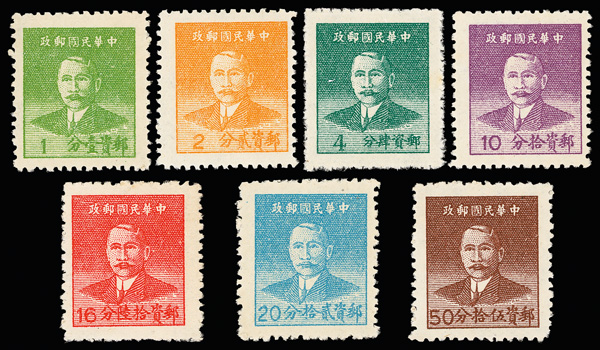 4184 ng image1949, Silver Yuan, Dr. Sun Yat-sen, 1¢-500¢ complete (Chan S22-S30. Scott 973-981), nicely centered set with rich colors, without gum as issued, Very Fine. Scott $1,042 (HK$ 8,020). (Image1) (Image2) (Image3) (Image4) (All Images)