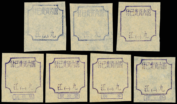 4180 ng image1949, Kiukiang Silver Yuan Meters, group of seven, all cleanly struck on fresh, sound paper, one without office indicator, one office "A", the rest office "1", without gum as issued, Very Fine, an attractive group. (Image1) (Image2) (All Images)