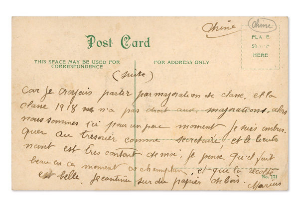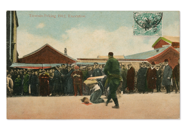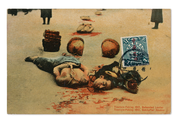 4200 O image1912, Two "Execution" picture post cards, one with English & German "Tientsin-Peking 1912, Beheaded Looter" caption, franked with 3c Waterlow "Republic" overprint tied by indistinct cancel, without message or address on reverse but with Lutai receiver; the second captioned "Tientsin-Peking 1912, Execution" franked by 2c on 5c French Offices in China tied by partial French postmark, the reverse with continuation of a correspondence; both cards colored, still fresh and remarkably sound, Very Fine. (Image1) (Image2) (Image3) (Image4) (All Images)