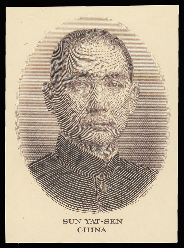 4197 og imageca. 1940, American Bank Note Co. Sun Yat-sen vignette, a 46 x 62mm engraved vignette with caption, the design of which was used for the 1941 American Bank Note issue (#449-464), a Superb gem, accompanied by "Legacy Currency Grading" certificate graded "67PPQ". (Image1) (Image2) (All Images)