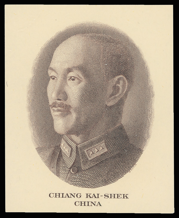 4196 og imageca. 1940, American Bank Note Co. Chiang Kai-shek vignette, 48 x 58mm engraved vignette with caption, Superb gem, accompanied by "Legacy Currency Grading" certificate graded "67PPQ". (Image1) (Image2) (All Images)