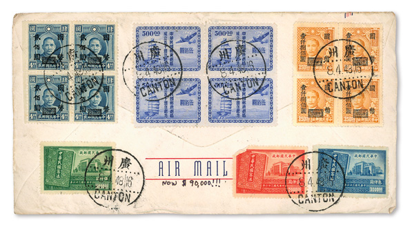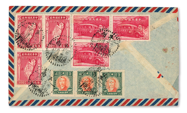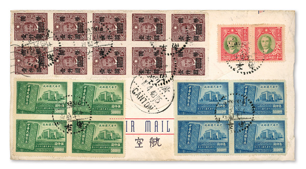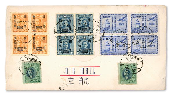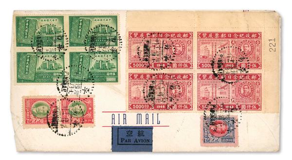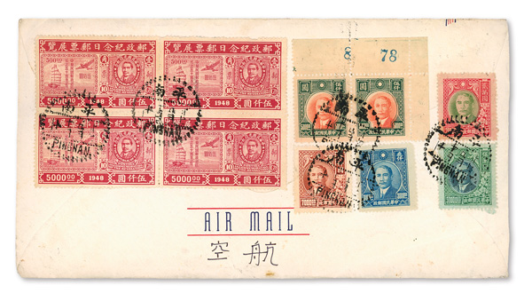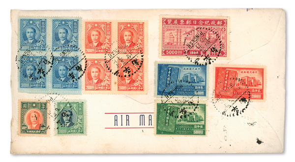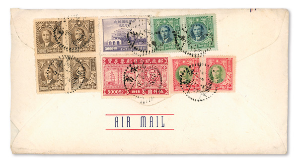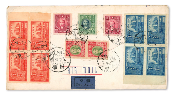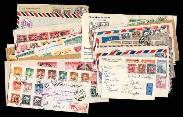 4212 imageChina, Alluring Late-Republic Postal History Compilation, 1947-49, comprising 33 covers and a picture post card, variously solo-, single- or mixed-franked (some quite spectacular), including a couple up-rated First Day Covers, Airmail, Registered, Printed Matter and Postage Due covers, the stamps a mix of commemoratives and CNC, Gold or Silver Sun Yat-sens; various origins, some interesting auxiliary markings, etc.; a great lot for the rate specialist and the dealer alike, Fine to Very Fine, fully imaged online. (Video for this lot) (Image1) (All Images)