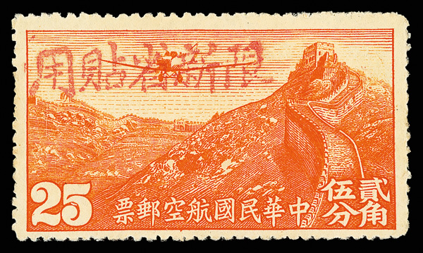 4217 O imageAirmail, 1932, handstamped on Reaper, 30¢ deep brown purple (Chan PSA4. Scott C4), attractively centered with bold color and cleanly struck bilingual cancel, Very Fine, scarce. Scott $990 (HK$ 7,620). (Image1) (Image2) (All Images)