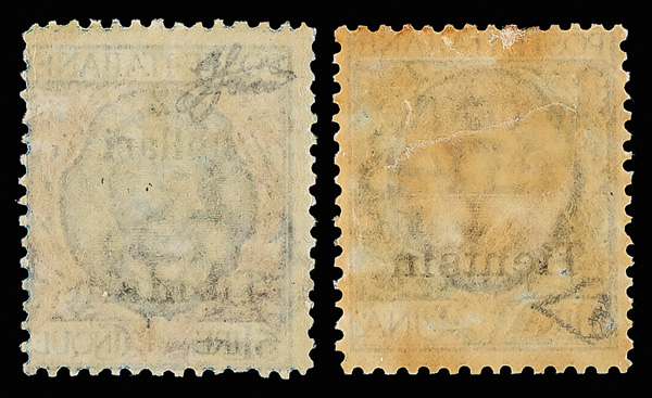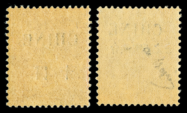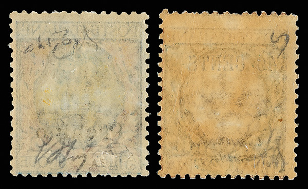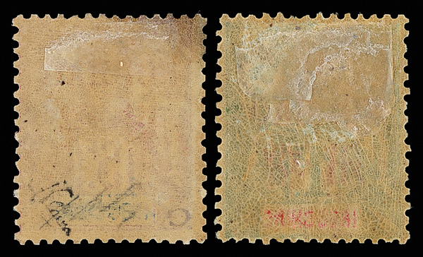 4228 og image1901, 1f bronze green and 5f red lilac (Scott 14-15. Maury 14-15), fresh and sound with deep colors and clean overprints, o.g., hinged, Fine to Very Fine, 5f signed twice. (Image1) (Image2) (All Images)