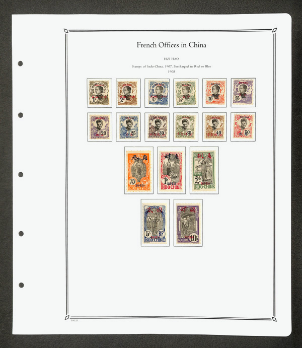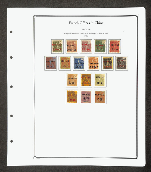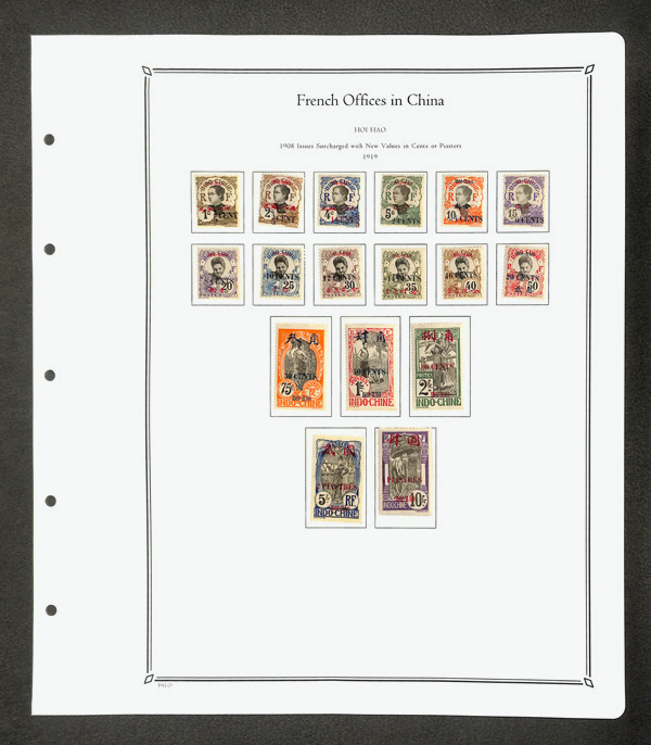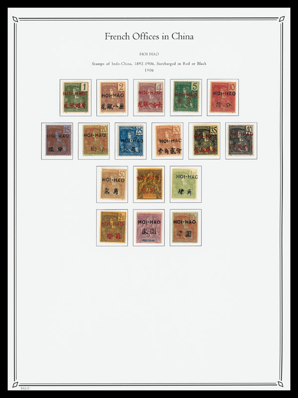 4226 imageFrench Offices in Hoi Hao, Near-Complete All-Mint Collection, 1901-19, bright and fresh, on Palo hingeless album pages, comprising #1-13, 16-31, 32-48, 49-66 and 67-84; a lovely holding in sound condition; note that Palo pages are printed in color; all stamps actually present are list above, Fine to Very Fine with much better, fully imaged online. (Image1) (Image2) (Image3) (Image4) (Image5) (All Images)