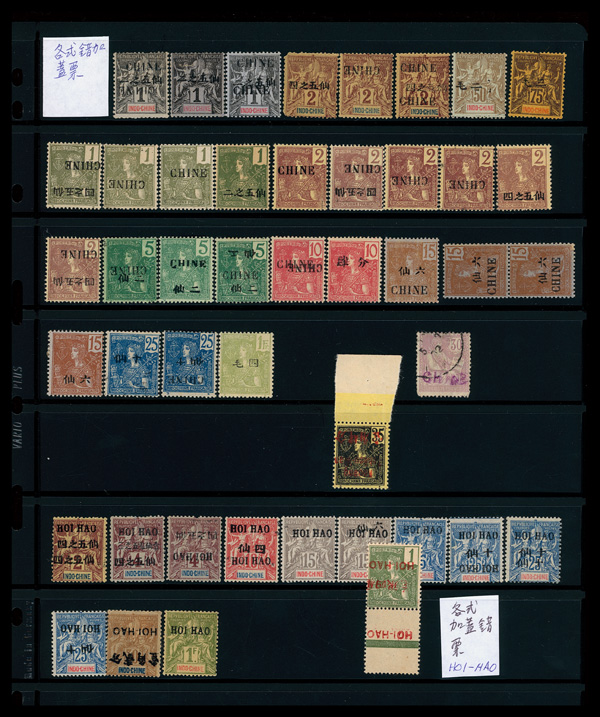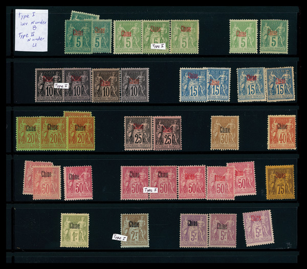 4222 imageFrench Offices in China, Well-Filled Mint Collection, 1894-1922, on Palo hingeless album pages, plus extras/varieties on a black stocksheet, an attractive collection with the overwhelming majority mint (album pages nearly all mint, extras a side each mint and used); the album page collection comprises #1-12A, 17 (2, 1 each mint and used), 18-33, 34-44, 45 (2, 1 each mint and used), 45a, 57-64, 65-73, 75-85, J1-J6, J22 & J23 (both used), and J33-J36; a lovely holding; note that Palo pages are printed in color; all stamps actually present are listed above, Fine to Very Fine with much better, fully imaged online. Shipping charges apply - weight 0.6 lbs. (PDF for this Lot) (Image1) (All Images)