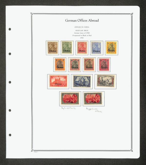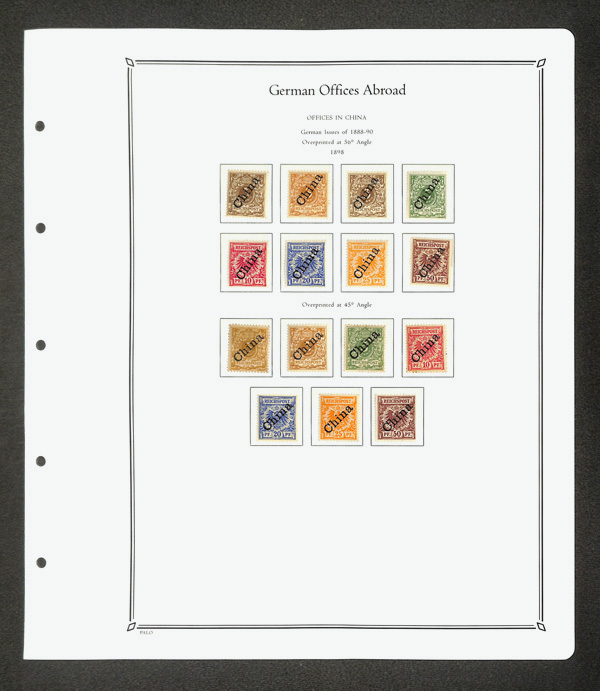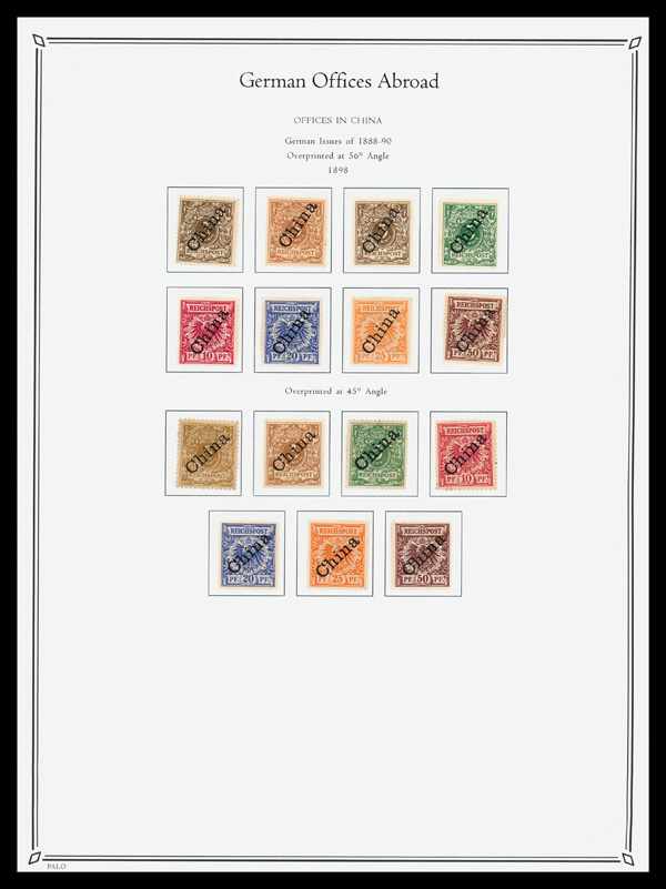 4229 imageGerman Offices in China, Two-Page Mint Collection, 1898-1901, Post Office fresh and sound with bold colors, a lovely holding on two Palo hingeless pages, comprising complete Numeral issues (both 56° and 45° overprints) plus the basic 1901 Germania/Symbols of Empire set (#1-6, 1c, 2a-6a, 24-36, 36b); a solid foundation on which to build, Fine to Very Fine with much better, fully imaged online. (Image1) (Image2) (Image3) (All Images)