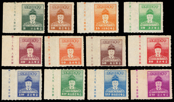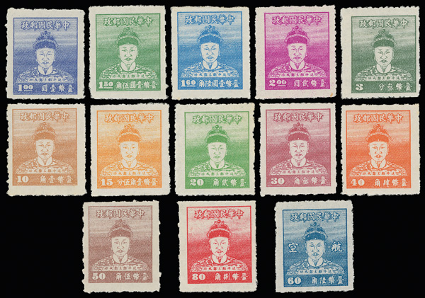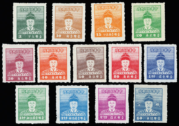 4260 ng image1950, Koxinga Issue Complete (Scott 1012-1024, C64), as matched left margin imprint singles with exception of the 10c value without margin, a very clean and desirable set, without gum as issued, Very Fine. (Image1) (Image2) (Image3) (Image4) (All Images)