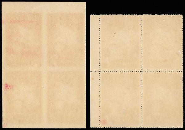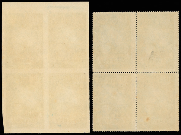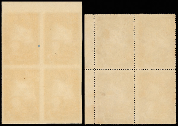 4268 ngbl image1951, Self-Government complete, perforated and imperforate (Scott 1037-1040 vars.), both sets as blocks of four, all marginal but the $1 perforated, the imperforates all top margin block; fresh colors throughout, without gum as issued, Very Fine. (Image1) (Image2) (Image3) (Image4) (Image5) (Image6) (Image7) (Image8) (All Images)