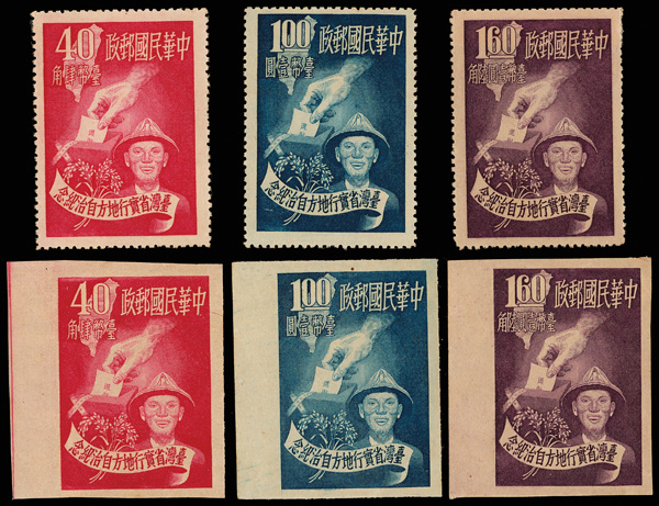4266 ng image1951, Self-Government complete, perforated and imperforate (Scott 1037-1040 vars.), each set fresh with rich colors and excellent centering, without gum as issued, Very Fine. (Image1) (Image2) (Image3) (Image4) (All Images)
