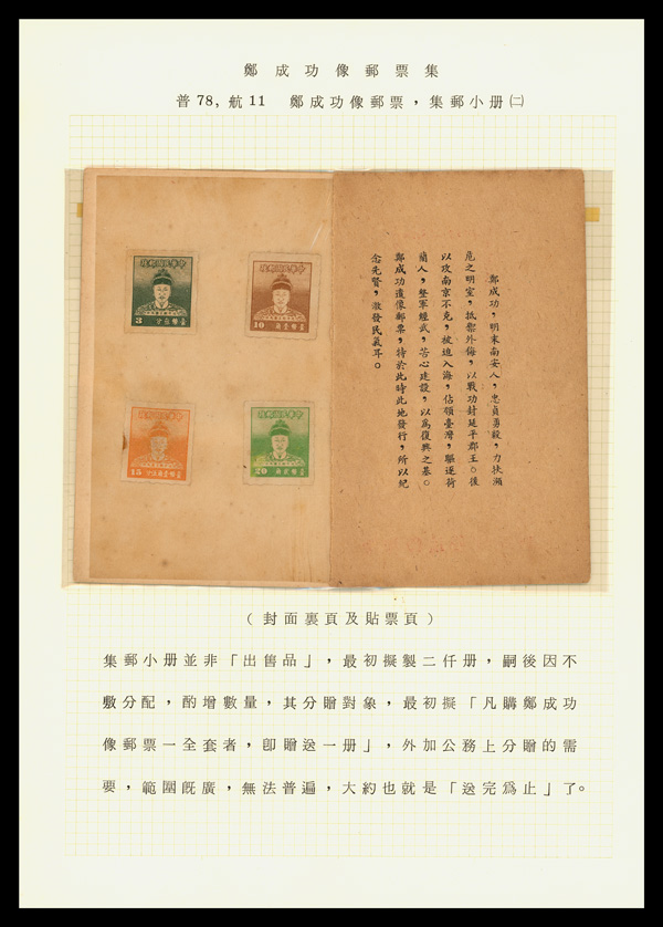annotated in Chinese, offering a mix of late Republic Province and early post-war Taiwan material; begins with a Koxinga presentation booklet (originally printed in an edition of 2000 as a gift for the purchase of the entire set or as official