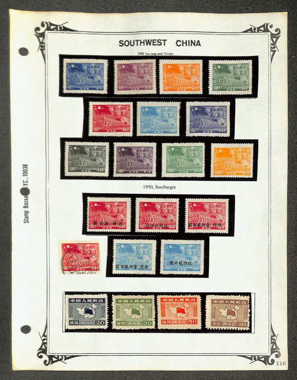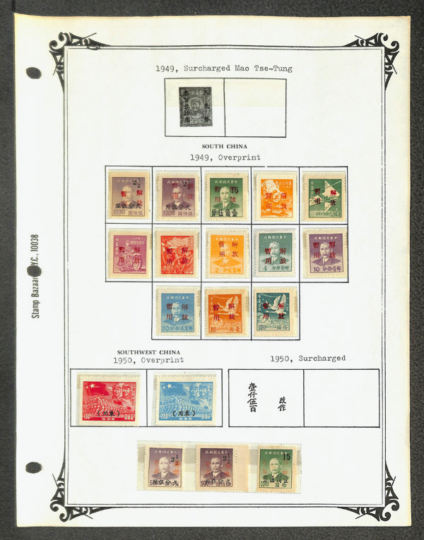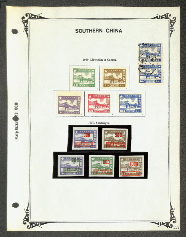 4332 imageChina (People's Republic) - Liberated Areas, Neat Collection of South China and Southwest China, 1949-50, mostly mounted (a couple hinged) on album pages, bright and clean throughout; South China complete #7L1-7L23 with #7L6a-7L8a and a used vertical pair of #7L5; Southwest China solid with #8L1-8L27 (several premium stamps within), 8L30-8L36, 8L38-8L50, 8L55-8L59, plus a used #8L1; attractive collection ready for a new home, Very Fine, fully imaged online. (Image1) (Image2) (Image3) (Image4) (Image5) (Image6) (All Images)