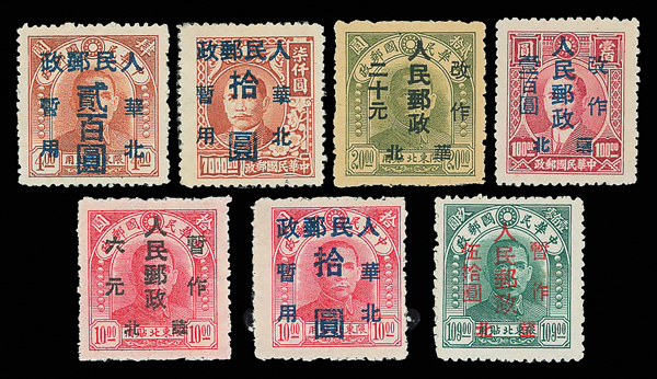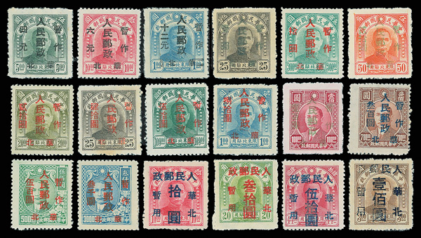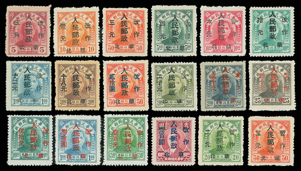 4340 ng image1949, North China People's Post, Peking surcharge on Dr. Sun Yat-sen, complete (Yang NC333-369. Scott 3L37-3L76), the basic March-July and June set plus #3L47a, 3L53a, 3L58a, 3L65a and 3L71a, all fresh, without gum as issued, Fine to Very Fine, an elusive set to put together. Scott $686 (HK$ 5,280). (Image1) (Image2) (Image3) (Image4) (Image5) (Image6) (Image7) (Image8) (All Images)