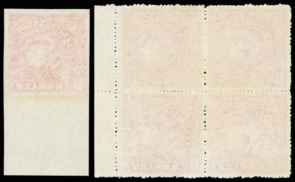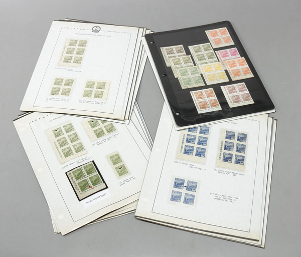 4349 imageNorth East China, Specialized Tien An Men Issue Collection, 1950-51, erudite and fully annotated on exhibition pages, mainly imprint blocks of four or six with singles, blocks and larger multiples as well, detailing imprint types, plate flaws, perforation shifts and omissions, etc., covering #1L140-1L149, 1L164-1L166 and 1L167-1L175; also includes a bonus folder of research material in Chinese on imprint types and plating; fresh and bright throughout, a most uncommon offering, Very Fine, a must-see; fully imaged online. Scott $50,000 (HK$ 384,620) (Owner's). Shipping charges apply - weight 2 lbs. (Video for this lot) (Image1) (All Images)