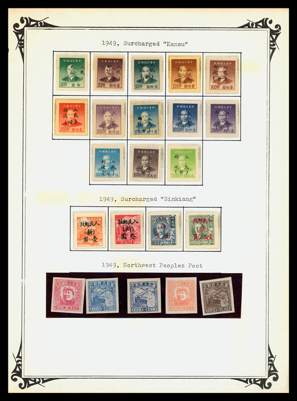4346 imageNorth West China, Highly Complete Mint Collection, 1945-49, mounted on album pages, all nicely centered with strong colors, including better such as #4L11-4L15, 4L23-4L24, 4L31-4L33, 4L34-4L44, 4L48-4L60 and 4L61-4L64; a couple marginal, with paper types for the specialist with a Yang catalogue; a pretty group sure to please, Very Fine, fully imaged online. (Image1) (Image2) (Image3) (Image4) (All Images)