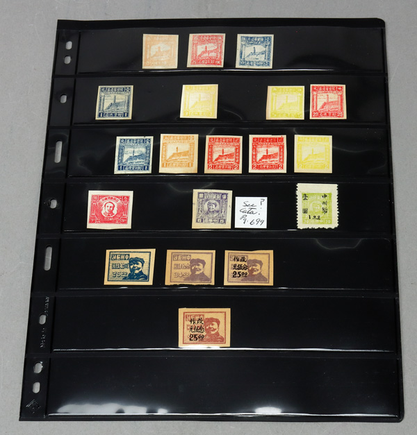 4331 imageChina (People's Republic) - Liberated Areas, Wide-Ranging Mostly Mint Compilation, covering all eight areas to varying degrees, the stamps in glassines, on black cards or still in auction holders, many if not most identified by Scott or Yang; majority mint but note a solid number of used items as well; note imperfs, various Scott minor number items, etc.; unchecked for paper or other varieties, offered as received; light to useful duplication for the busy dealer, Very Fine overall, an idea of what's here is imaged online; worth the time to review. Shipping charges apply - weight 0.8 lbs. (PDF for this Lot) (Image1) (All Images)