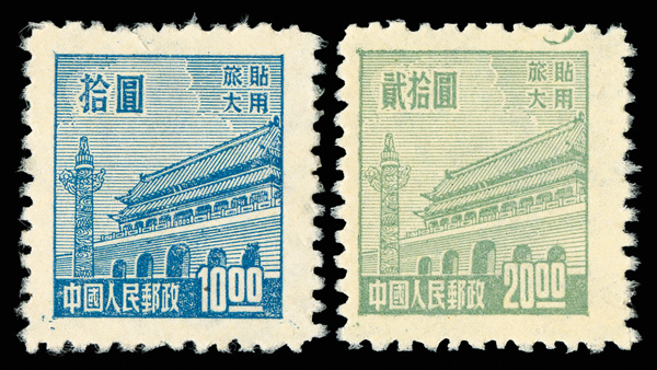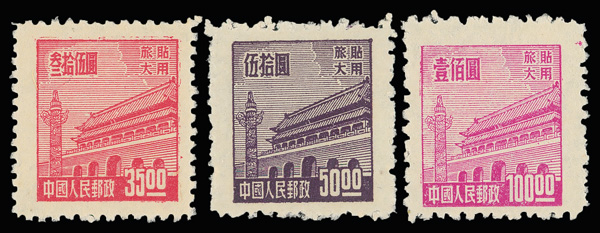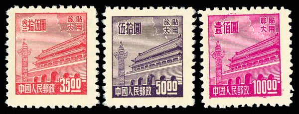 4367 ng image1950, Tien An Men, $10-$100 complete (Yang AD69-73. Scott 2L72-2L76), a fresh and nicely centered set, without gum as issued, Very Fine. Scott $735 (HK$ 5,650). (Image1) (Image2) (Image3) (Image4) (All Images)