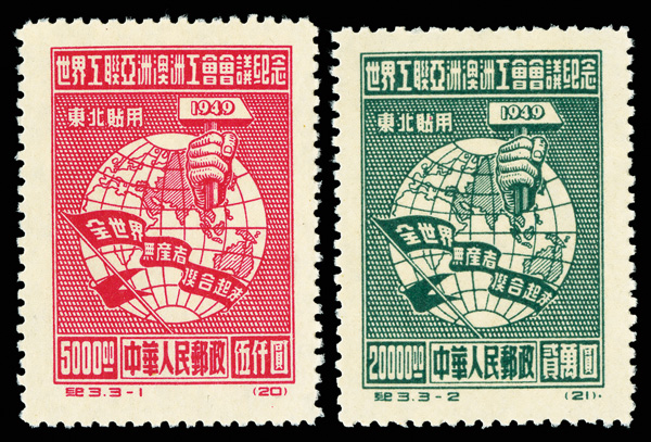 4359 ng image1949, Trade Union Conference, N.E. Use (C3NE) complete (Yang C20-22. Scott 1L133-1L135), Post Office fresh and pristine with exceptional centering, without gum as issued, Very Fine. Scott $2,850 (HK$ 21,920). (Image1) (Image2) (Image3) (Image4) (All Images)