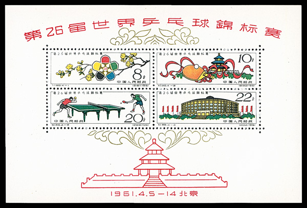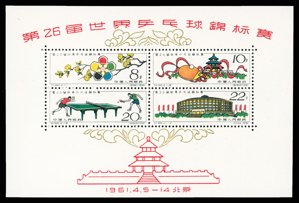 4404 ng image1961, World Table Tennis Championships souvenir sheet (C86M) (Yang C86M. Scott 566a), Post Office fresh with solid corners, without gum as issued, Very Fine. Scott $1,000 (HK$ 7,690). (Image1) (Image2) (All Images)