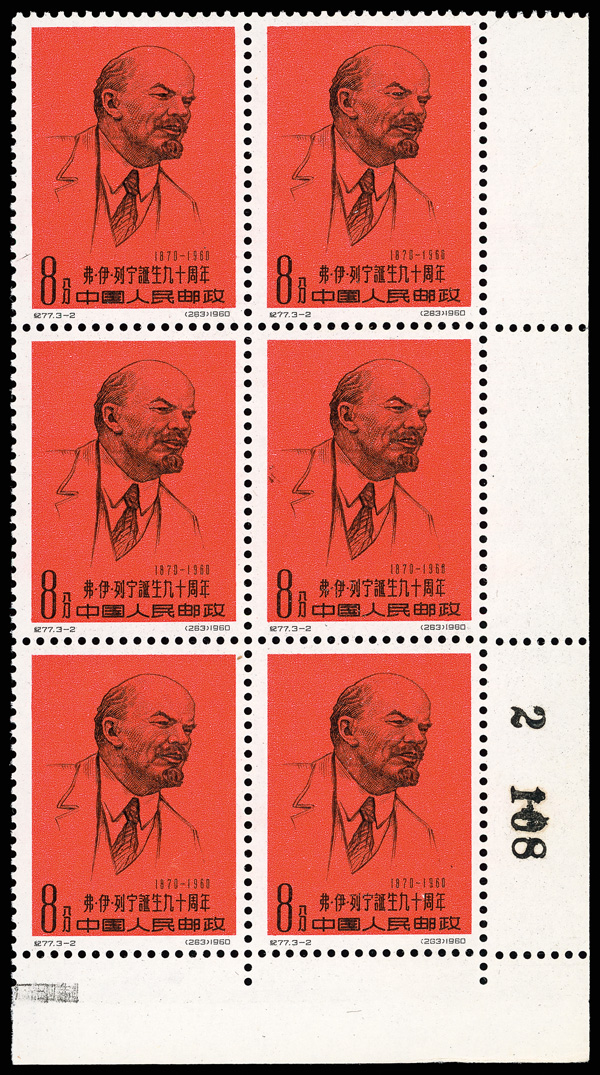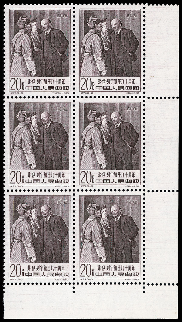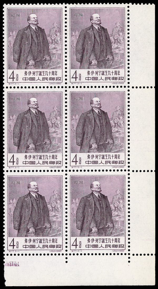 4399 nhbl image1960, Lenin (C77) complete (Yang C262-264. Scott 499-501), bottom right corner margin blocks of 6, Post Office fresh, o.g., never hinged, Very Fine. Scott $645 as singles (HK$ 4,960). (Image1) (Image2) (Image3) (Image4) (Image5) (Image6) (All Images)