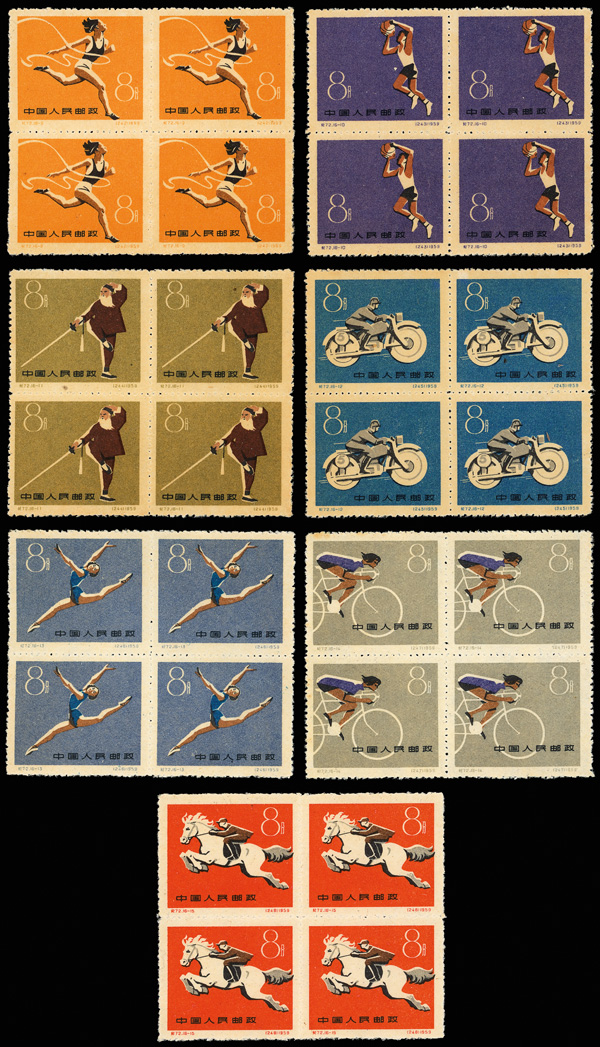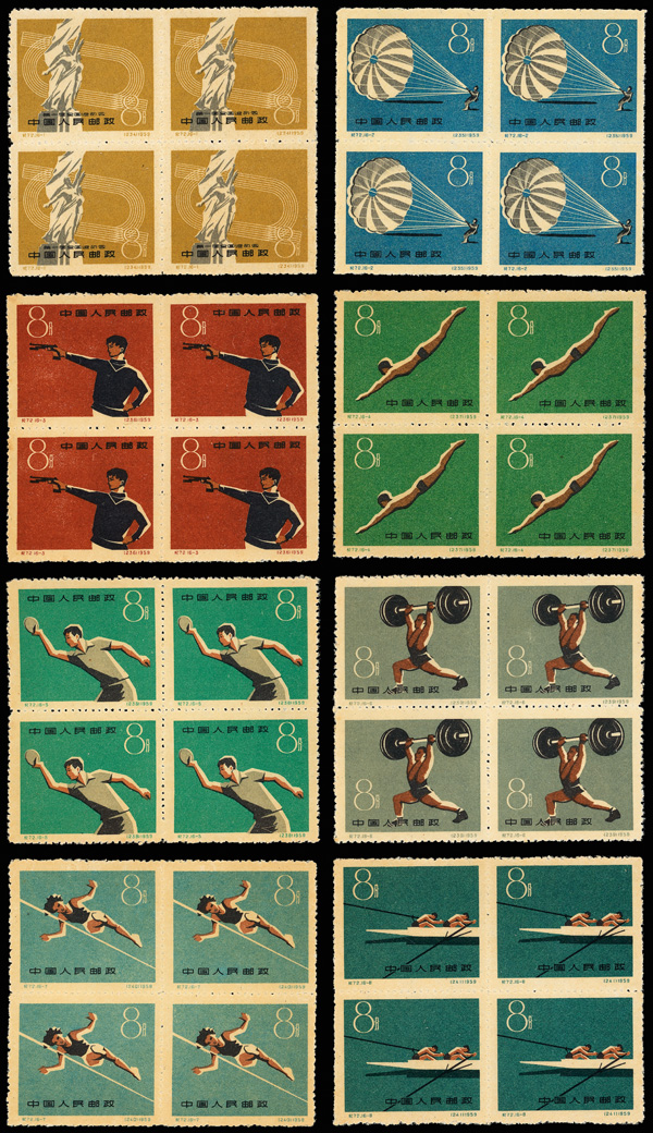 4397 ngbl image1959, 8f First National Games (C72) complete (Scott 467-487), blocks of 4, pristine, without gum as issued, Very Fine. Scott $480 as singles (HK$ 3,690). (Image1) (Image2) (Image3) (Image4) (Image5) (Image6) (All Images)