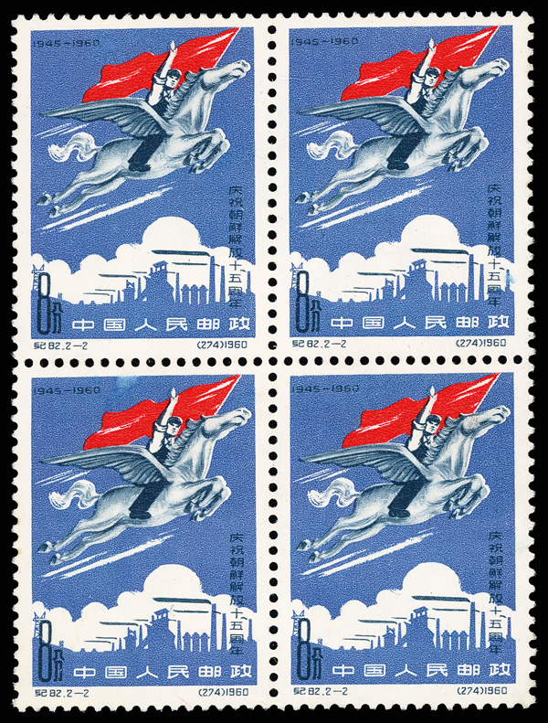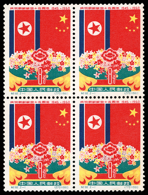 4402 nhbl image1960, Liberation of Korea (C82) complete (Yang C273-274. Scott 525-526), blocks of 4, pristine with rich colors, o.g., never hinged, Very Fine and choice. Scott $780 as singles (HK$ 6,000). (Image1) (Image2) (Image3) (Image4) (All Images)