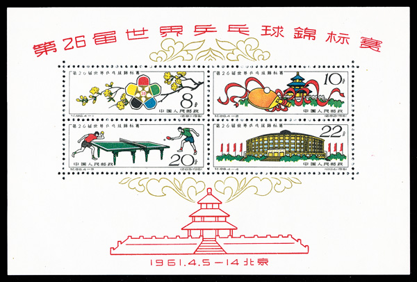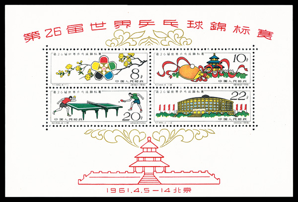 4405 ng image1961, World Table Tennis Championships souvenir sheet (C86M) (Yang C86M. Scott 566a), premium quality sheet with bright colors and sharp corners, without gum as issued, Very Fine. Scott $1,000 (HK$ 7,690). (Image1) (Image2) (All Images)
