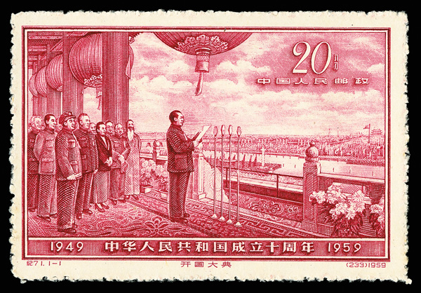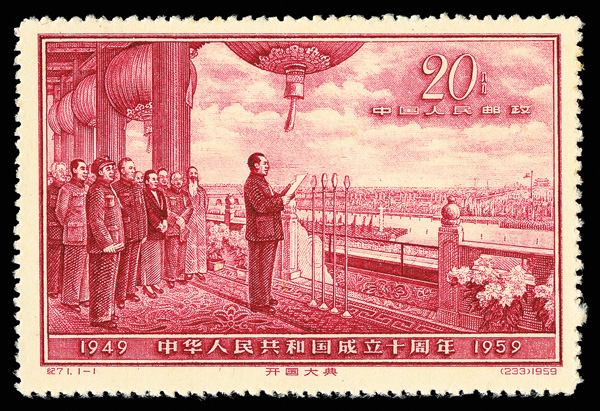 4395 ng image1959, 10th Anniversary of the People's Republic (5th Issue) (C71) (Yang C233. Scott 456), sound with bright color on fresh paper, without gum as issued, Very Fine. Scott $450 (HK$ 3,460). (Image1) (Image2) (All Images)