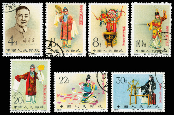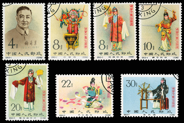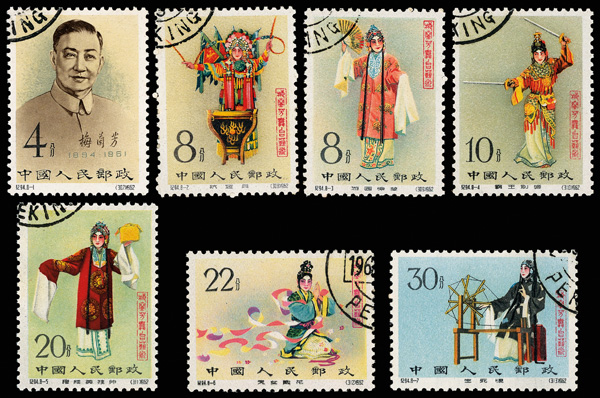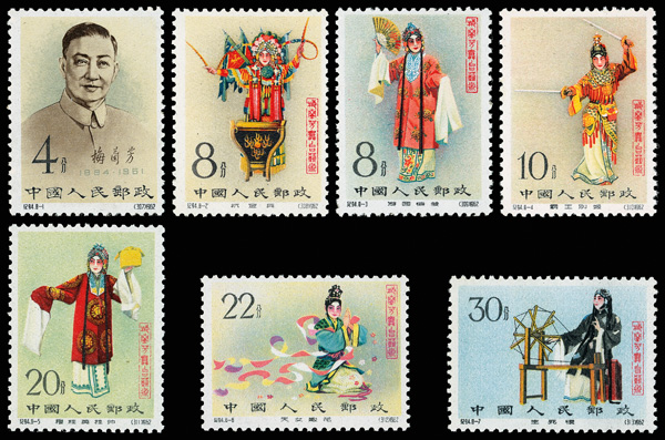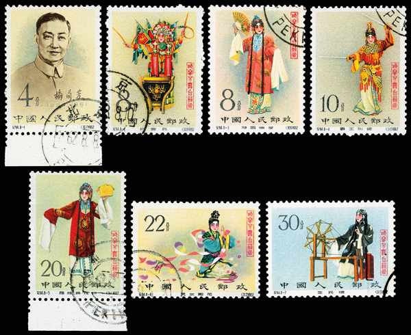 4420 O image1962, Mei Lan-fang, perforated (C94) complete (Yang C307-314. Scott 620-627), sound and bright, each with unobtrusive Peking corner CTO cancel, Very Fine. Scott $340 (HK$ 2,620). (Image1) (Image2) (Image3) (Image4) (All Images)