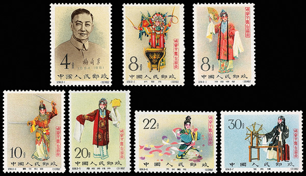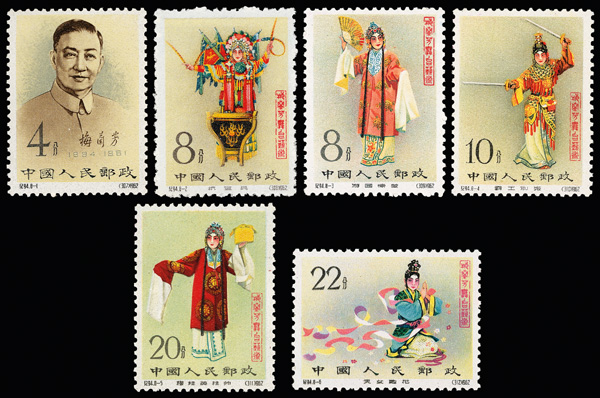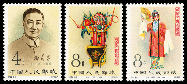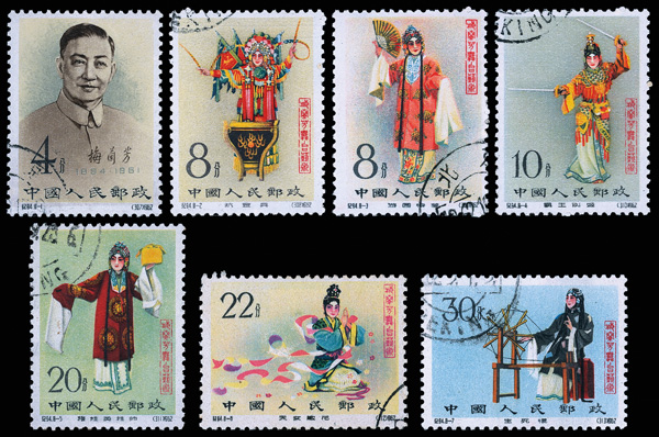 4419 O image1962, Mei Lan-fang, perforated (C94) complete (Yang C307-314. Scott 620-627), each fresh CTO, the 4f, 20f, and 50f being margin singles, Very Fine. Scott $340 (HK$ 2,620). (Image1) (Image2) (Image3) (Image4) (All Images)
