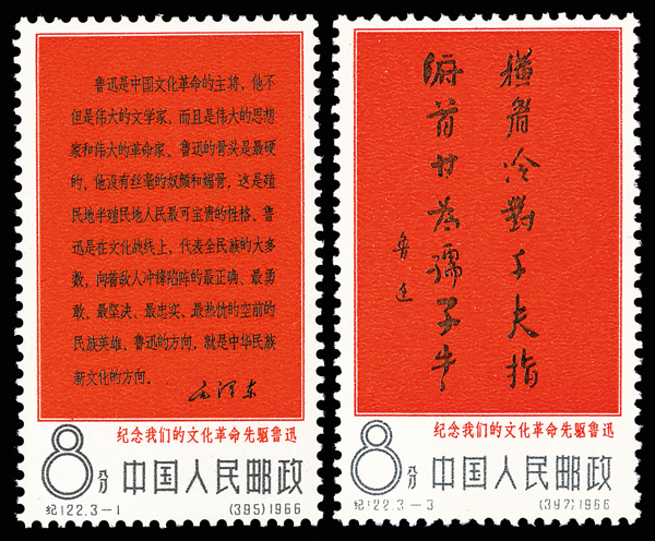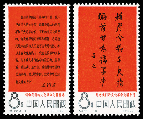 4443 nh image1966, Lu Xun (C122) complete (Yang C394-396. Scott 924-926), pristine with rich red, o.g., never hinged, Very Fine. Scott $400 (HK$ 3,080). (Image1) (Image2) (Image3) (Image4) (All Images)