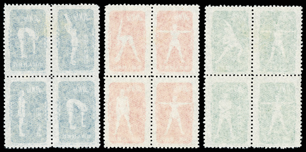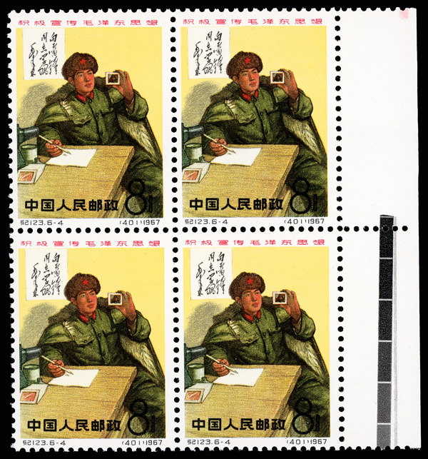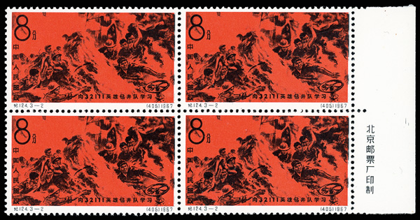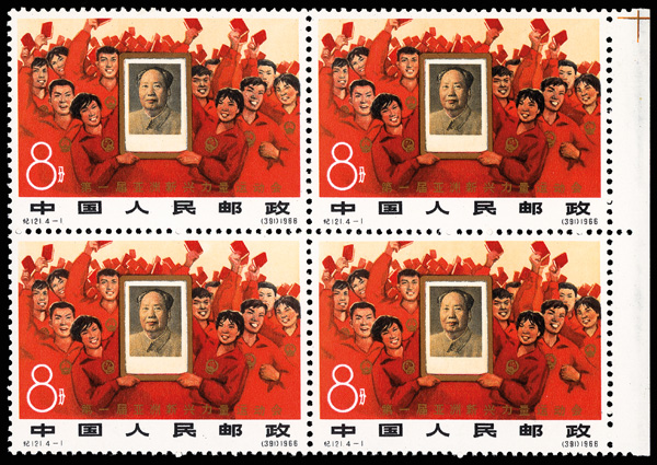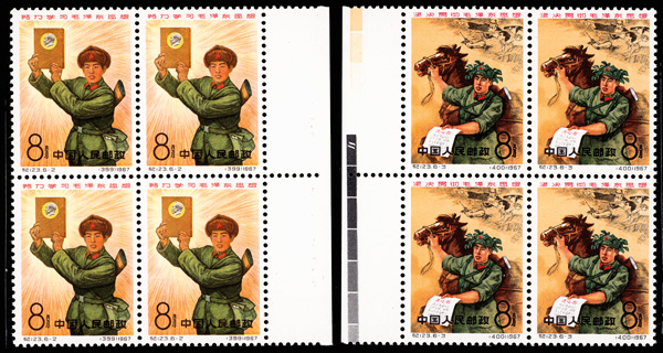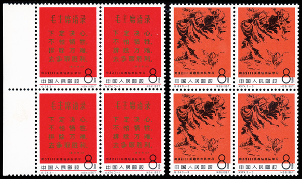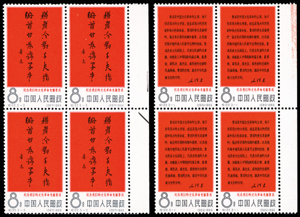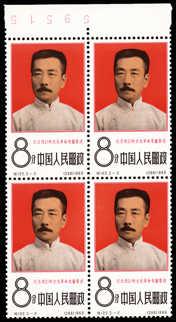 4444 nhbl image1966, Lu Xun (C122) complete (Yang C394-396. Scott 924-926), margin blocks of 4, choice with vibrant colors and excellent centering, o.g., never hinged, Very Fine. Scott $900 as singles (HK$ 6,920). (Image1) (Image2) (Image3) (Image4) (All Images)