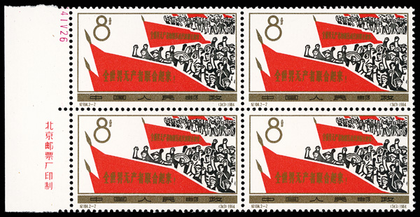 4431 nhbl image1964, Labor Day (C104) complete (Yang C341-342. Scott 758-759), marginal imprint blocks of 4, pristine with bold colors, o.g., never hinged, Very Fine. Scott $440 as singles (HK$ 3,380). (Image1) (Image2) (Image3) (Image4) (All Images)