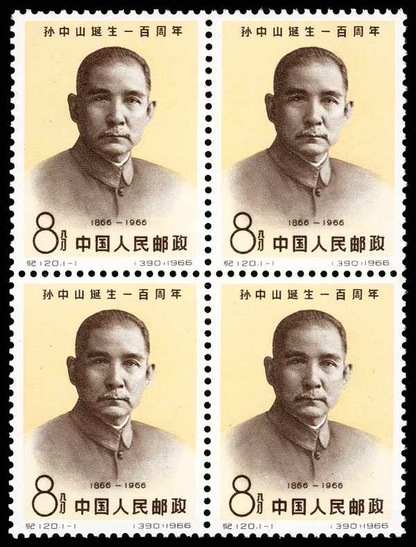 4439 nhbl image1966, Birth Centenary of Dr. Sun Yat-sen (C120) (Yang C389. Scott 919), block of 4, Post Office fresh with precise centering and lovely colors, o.g., never hinged, Very Fine. Scott $420 as singles (HK$ 3,230). (Image1) (Image2) (All Images)