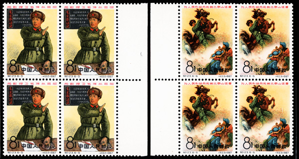 4448 nhbl image1967, Liu Ying-jun (C123) complete (Yang C397-402. Scott 930-935), margin blocks of 4, all with bold vibrant colors, o.g., never hinged, Very Fine, choice quality. Scott $2,280 as singles (HK$ 17,540). (Image1) (Image2) (Image3) (Image4) (Image5) (Image6) (Image7) (Image8) (All Images)